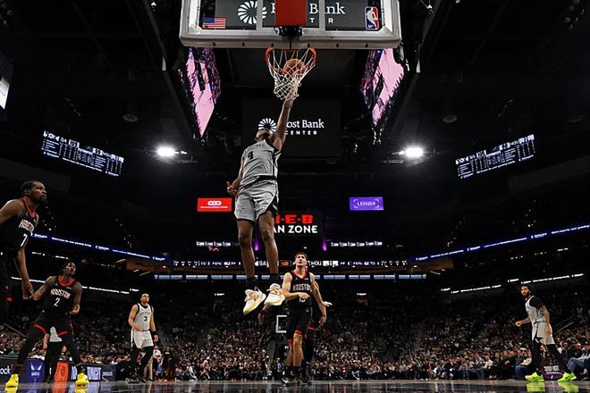 本场比赛中,马刺的先发控卫达隆-福克斯(De'Aaron Fox)的表现令人刮目相看,福克斯全场出场32分02秒,投篮15中9,三分线外4中1,罚球2中1,得到了20分2篮板10助攻的两双数据,还有2次失误和4次犯规,正负值为+17。福克斯在进攻端效率稳定,他的突破能力还是相当不错的,他也通过自己在这方面的特点给对手制造了不小的威胁,起到了很好的效果。福克斯也命中了一些中远距离投篮,也算是具备比较全面的得分能力的。除此之外,福克斯在传球和组织方面的表现同样相当不错,同样起到了很好的效果。总体来看,福克斯在本场比赛中也是打出了全面的表现,起到了后场核心应该起到的作用,并且为球队的胜利做出了自己的贡献。