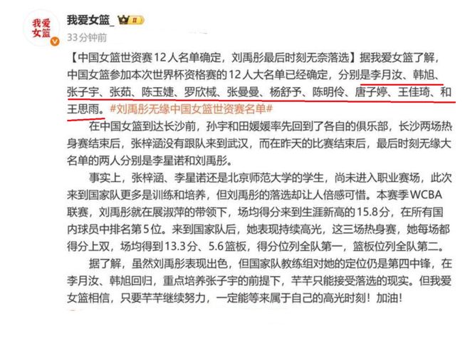 在过去的三场比赛,刘禹彤分别砍下了12分,17分和11分,三场比赛,一共得到了40分17篮板,是球队的得分王,比另一个中锋张子宇,得分多了足足11分,可以说,刘禹彤是中国女篮场上的一个稳定得分点。但是,却被淘汰出局,真的让很多球迷有点想不明白。