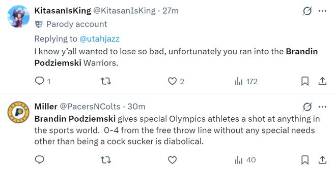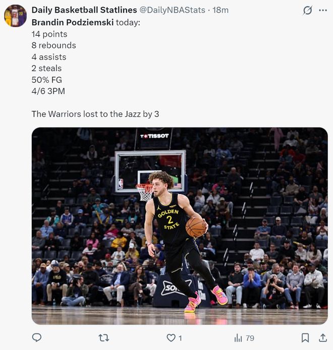 勇士球迷实在是忍无可忍的开喷了:波杰姆斯基这个家伙整个下半场就1次助攻简直太离谱了,这家伙为了数据每一晚的套路实在是太明显了令人想笑。完全不懂突破,只会在外面飘着投篮,我真XX的讨厌这个卷发的混蛋。